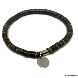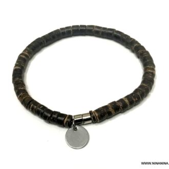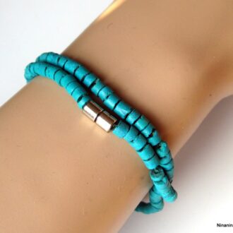 Bracelet heishi bleu turquoise et acier 3 tours composé de perles heishi bleu turquoise montées sur un fermoir cylindrique aimanté en acier inoxydable.