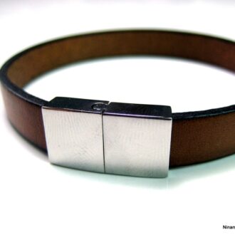 Bracelet Homme Cuir Marron Et Acier Inoxydable – Fermoir Magnétique