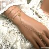 Cette jolie chaîne de main à enrouler autour du poignet, appelée également Bracelet bague est un bijou peu commun, qui peut se révéler d’une délicatesse et d’un raffinement exquis!