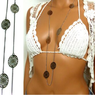 Longueur (fermoir compris) : 15 cm environ + 4 cm chainette de réglage (toute autre longueur possible – à indiquer en commentaire).
