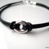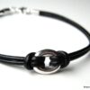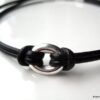 Bracelet cuir homme anneau ovale Argent 925 massif composé d’un anneau ovale monté sur un double cordon de cuir noir.
