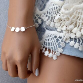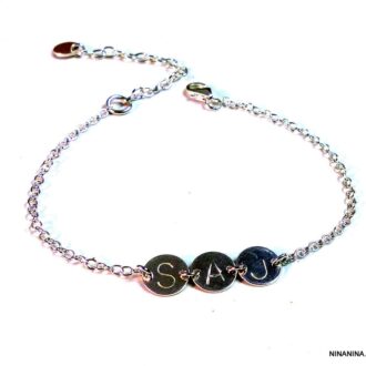 Bracelet femme personnalisé argent massif lettre gravée? composé de pastilles gravées en argent 925 montées sur une chainette en argent 925.