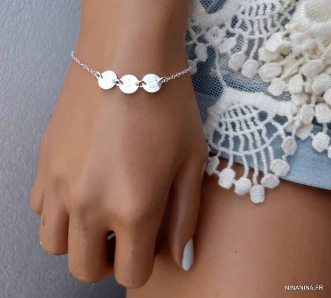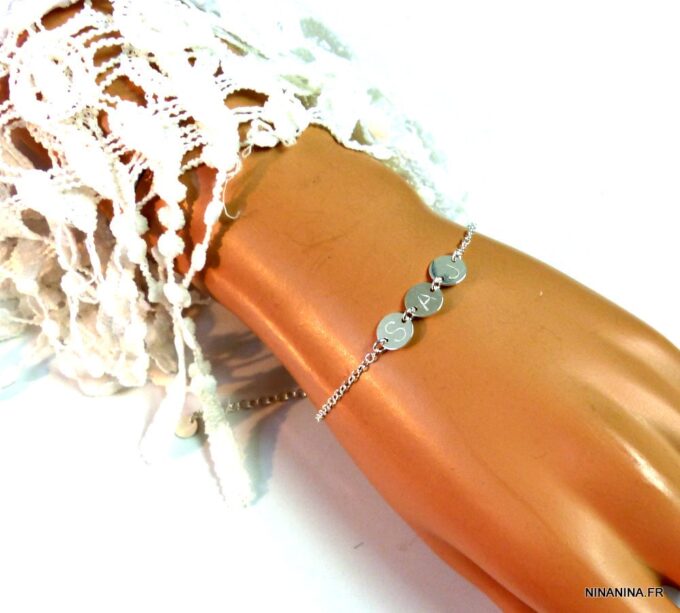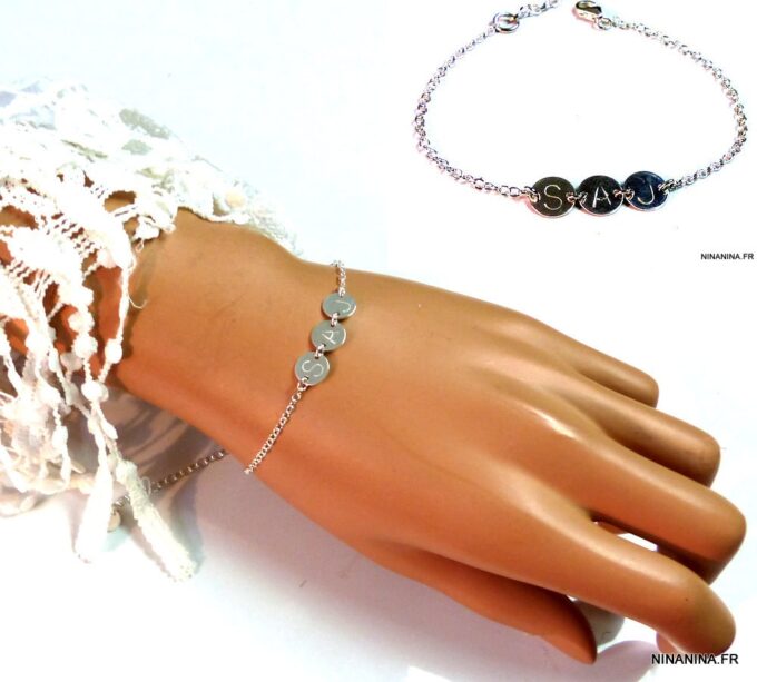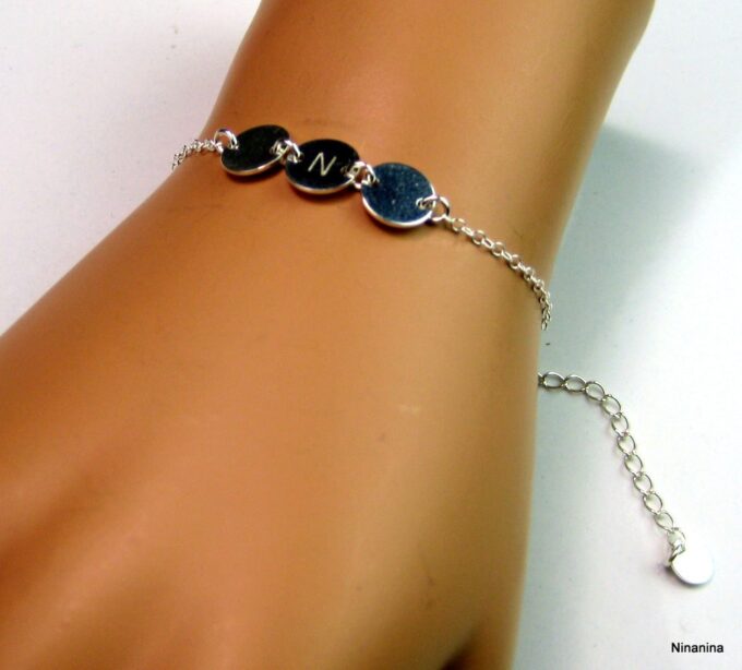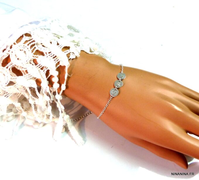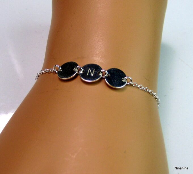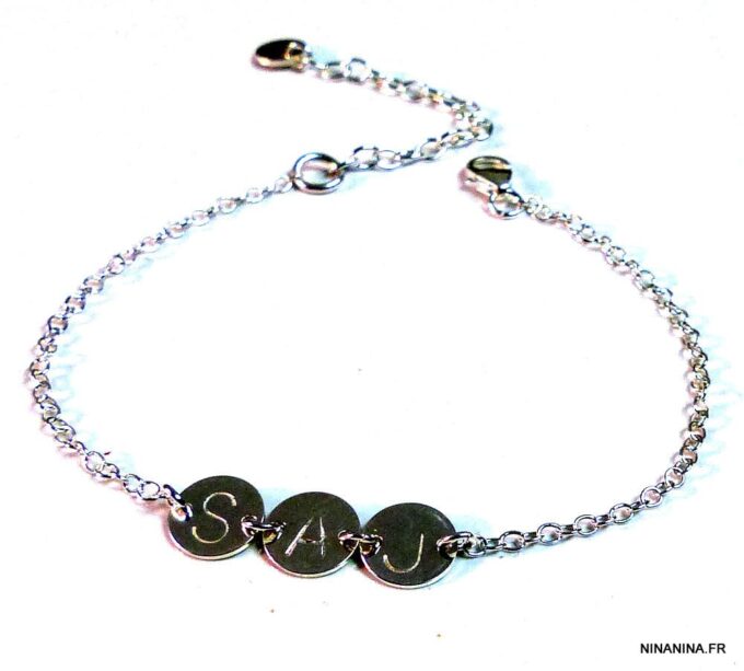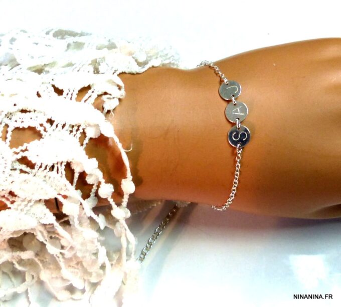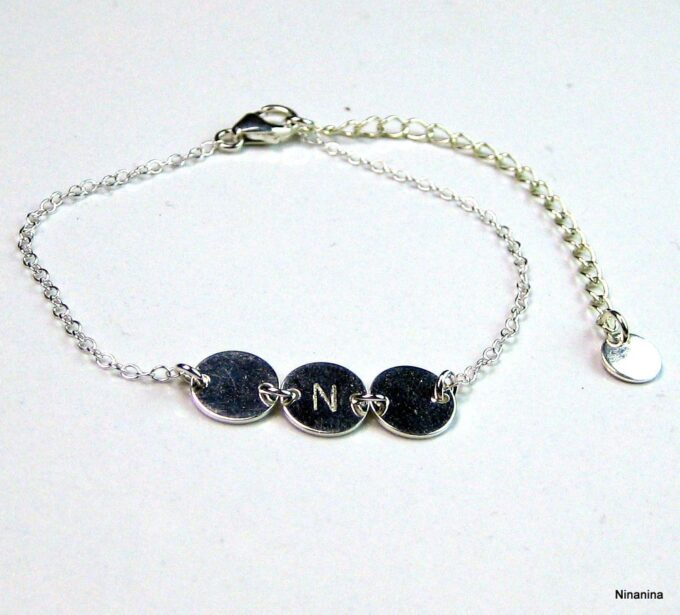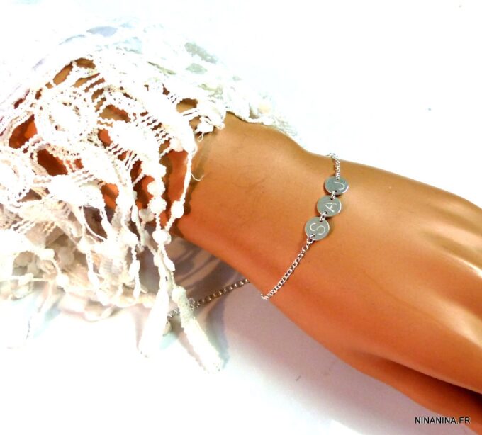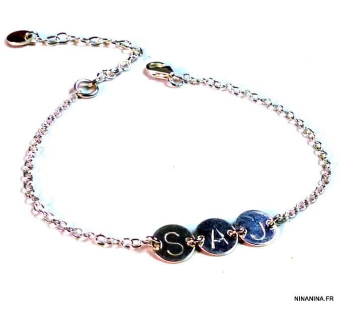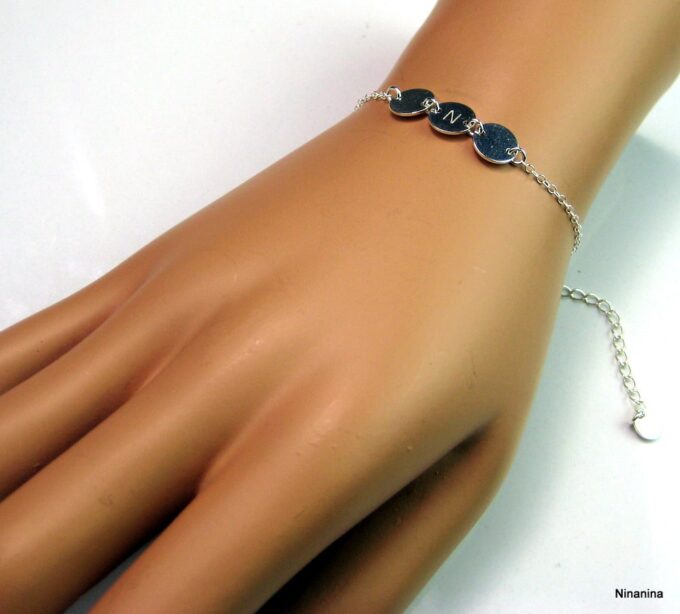 Vous souhaitez modifier ou ajouter une pièce de ce bracelet en argent? modifier la couleur ou la matière ? Ce bracelet personnalisé est fait sur mesure et comme la majorité des bijoux Ninanina, est personnalisable. En plus de choisir les lettres à graver, vous pouvez demander à modifier d’autres caractéristiques de ce bijou. La longueur proposée est de 16 cm mais il est possible d’opter pour une toute autre longueur si vous avez des poignets plus fins ou plus forts que la norme. Il vous suffit de laisser un commentaire et nous élaborerons ensemble votre nouveau bijou personnalisé.