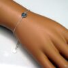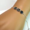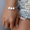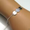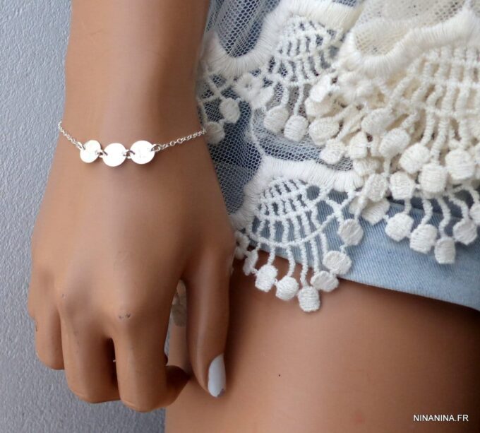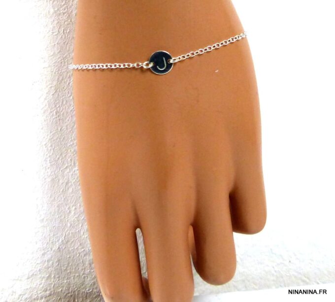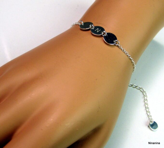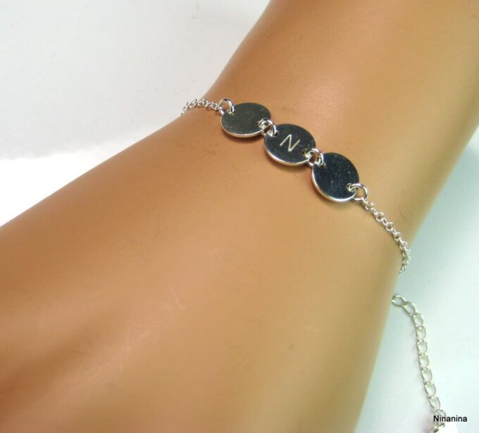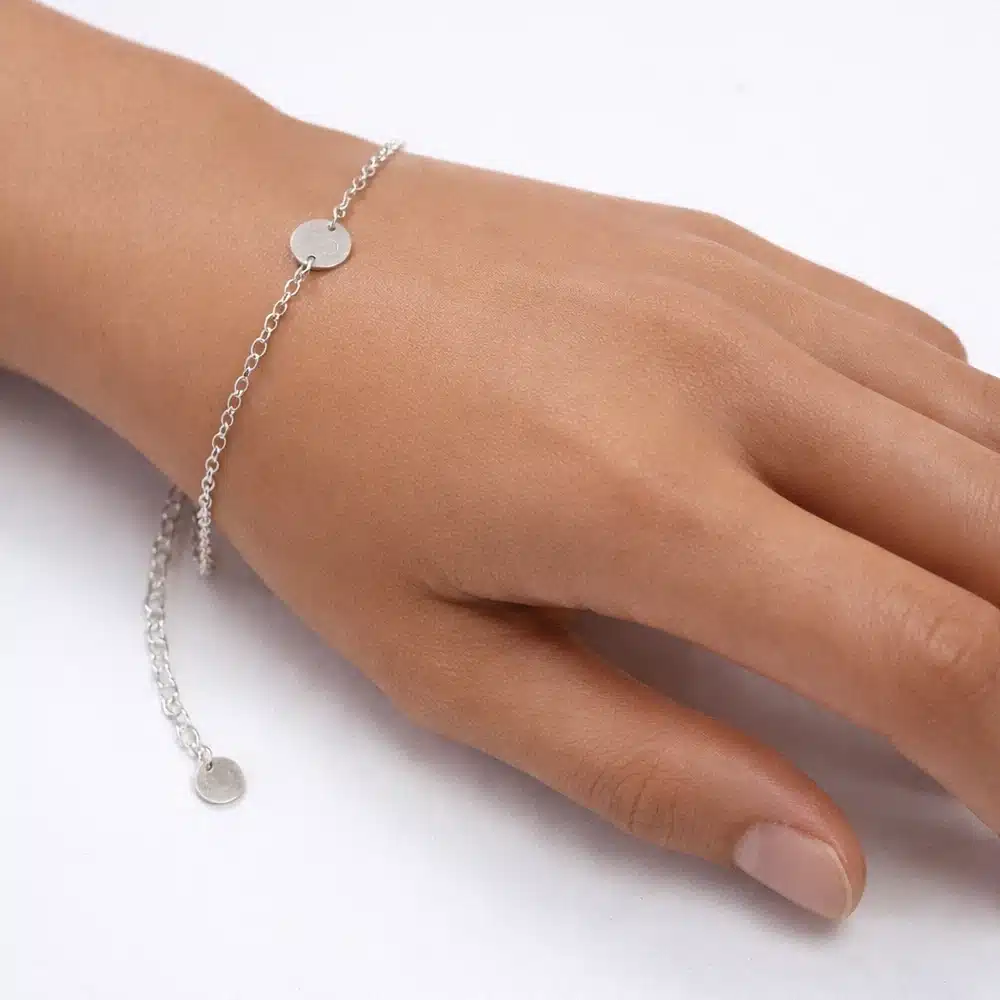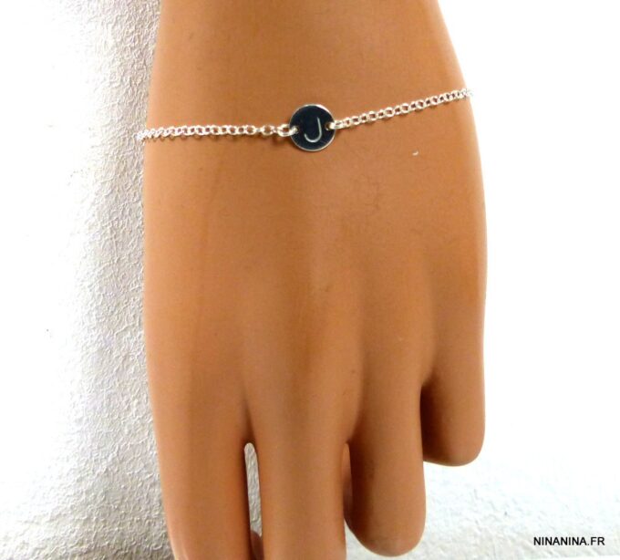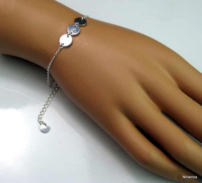 Ce Bracelet femme personnalisé en Argent de grande qualité est unique et fabriqué à la main, de façon artisanale dans notre atelier du sud de la France. Il s’agit d’une pièce faite sur mesure qui convient pour la majorité des poignets féminins, la longueur proposée est réglable de 16 à 22 cm. Merci de laisser un commentaire si vous souhaitez une autre longueur. Diamètre de la pastille : 0,8 cm. Fermoir mousqueton et chainette de réglage. Poids : 1,9 g