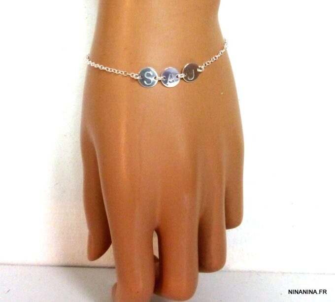 Habillez votre poignet avec les initiales de vos enfants ou faites en cadeau emprunt d’émotion avec ce ravissant Bracelet personnalisé femme Argent 925 gravé pas cher composé d’une pastille gravée en argent 925 montée sur une chainette en argent 925 maille forçat. Tout un symbole pour un bijou sobre, raffiné et élégant A personnaliser avec les lettres de votre choix (à indiquer en commentaire). Offrez ce joli Bracelet ultra tendance à votre amoureuse ou à votre meilleure amie!.