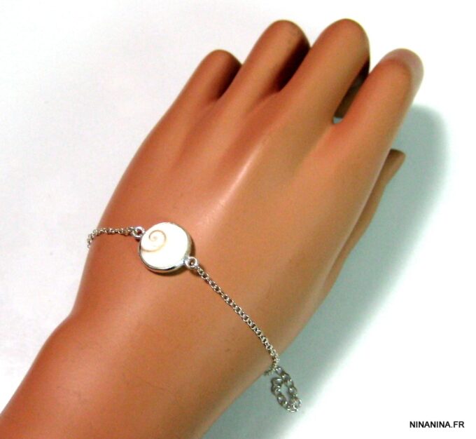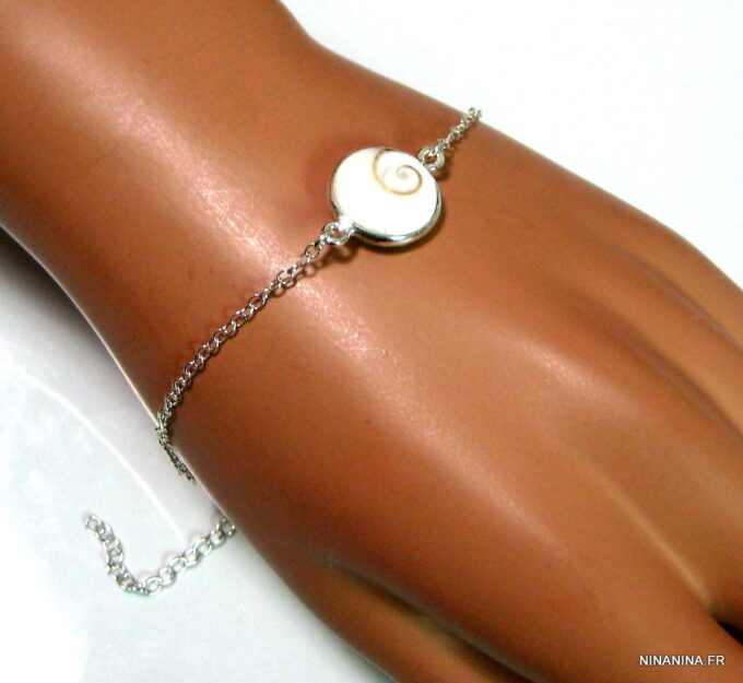Si vous êtes fan de Bracelets en argent mais aussi de bijoux coquillages, vous ferez une heureuse avec ce bracelet en argent 925 et son oeil de Sainte Lucie tout délicat! Un beau cadeau pour une amoureuse de la Corse dont ce petit coquillage est l’emblème!