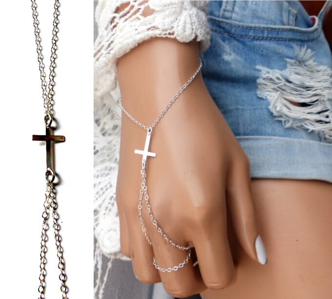 Splendide, délicat et raffiné, ce magnifique Bracelet bague gothique – chaine main croix argent composé d’une petite croix en argent 925 monté sur une chaine en en argent 925 maille forçat, à enrouler autour du doigt, délivre toute sa finesse, et vous fera tout simplement craquer! Une connotation gothique ou religieuse bien sûr, mais pas seulement, un bijou très original et très tendance!