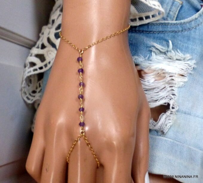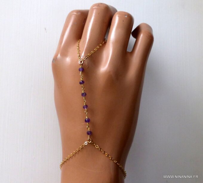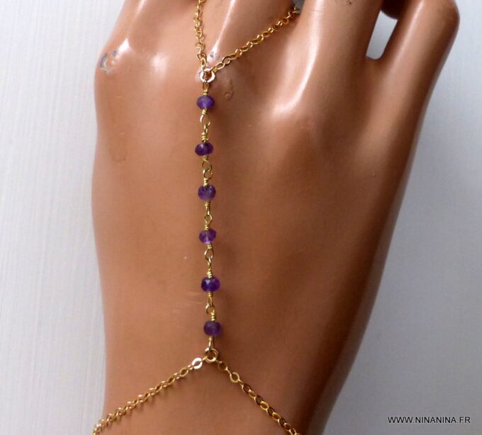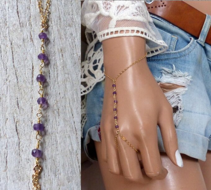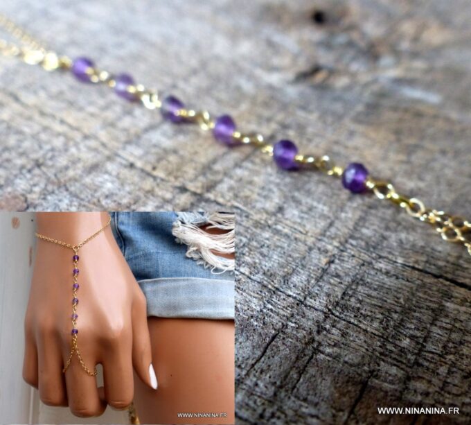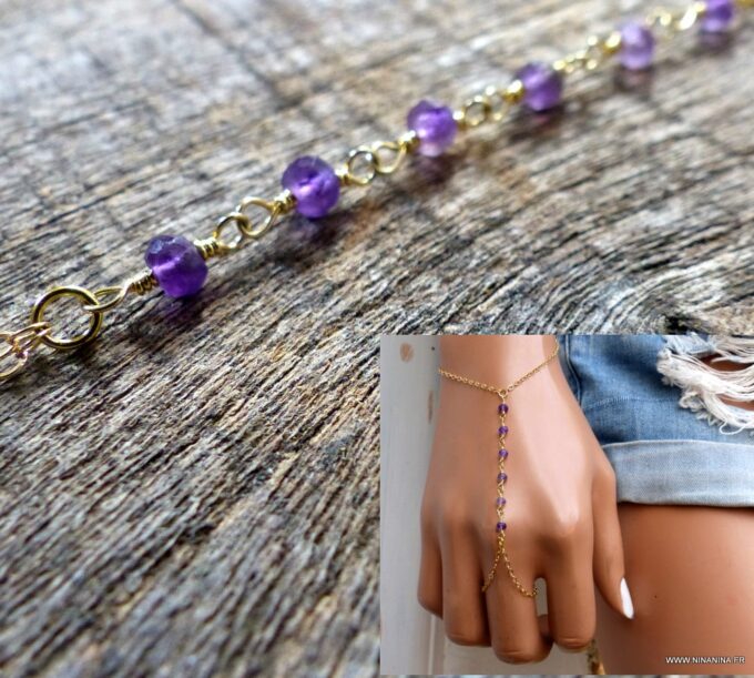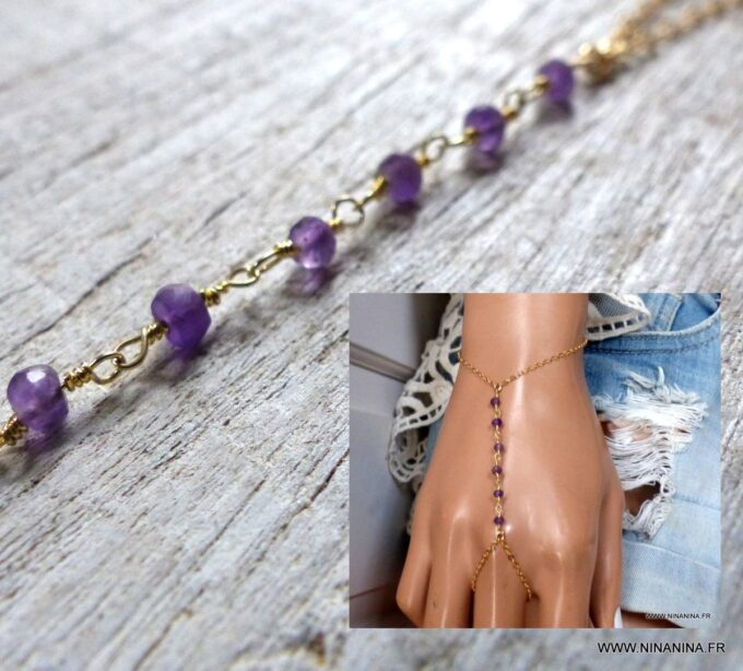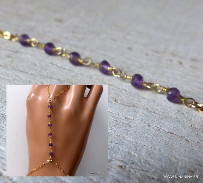 Un bracelet chaine de main en améthyste brute sexy et raffiné!