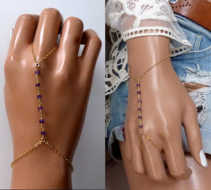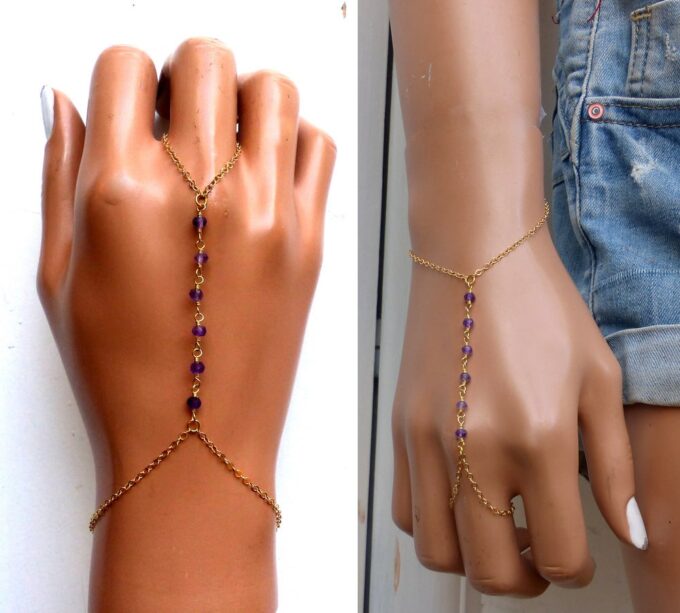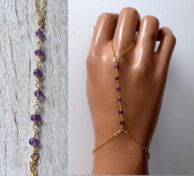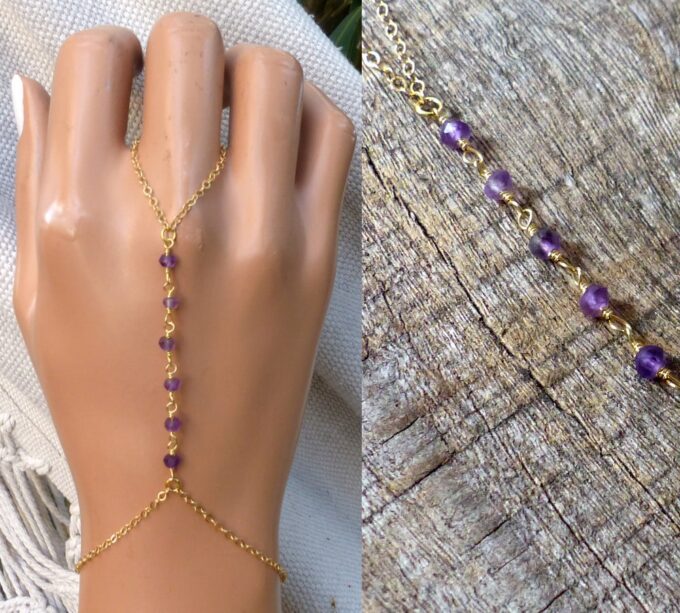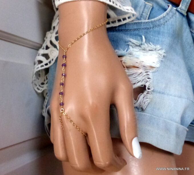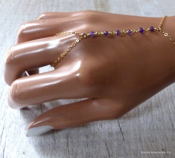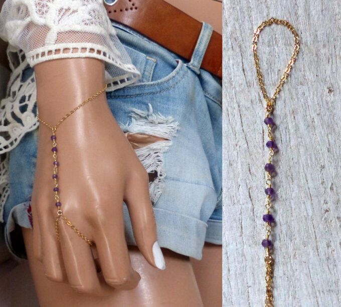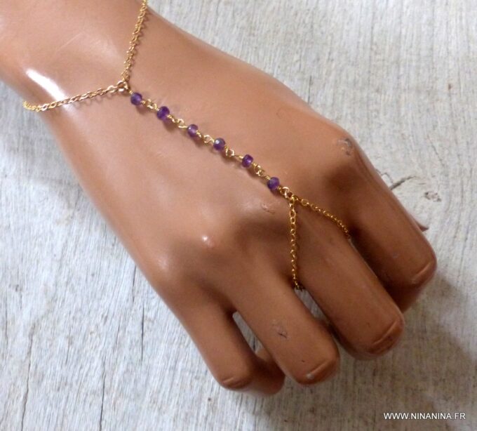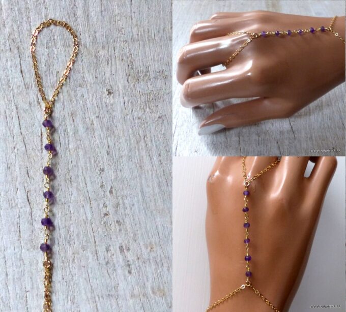 Un bracelet chaine de main en améthyste brute sexy et raffiné!