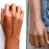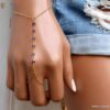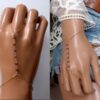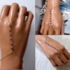 Cette jolie chaîne de main appelé également Bracelet bague est un bijou peu commun, qui peut se révéler d’une delicatesse et d’un raffinement exquis! Portez ce joli Bijou de main tendance seul pour un look minimaliste ou mixé à d’autres Bracelets Ninanina.