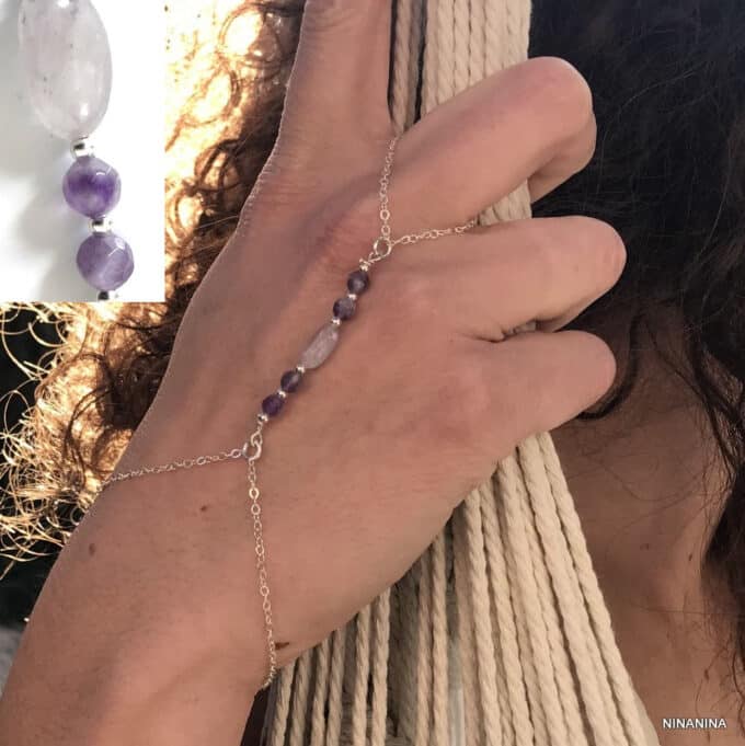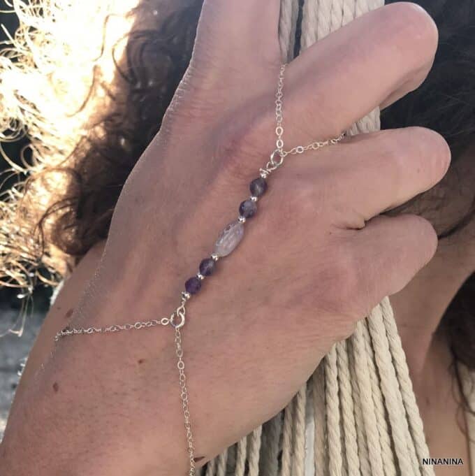 Bracelet Chaine Avec Bague Argent 925 Et Améthyste – Une pièce raffinée au style bohème et mystique