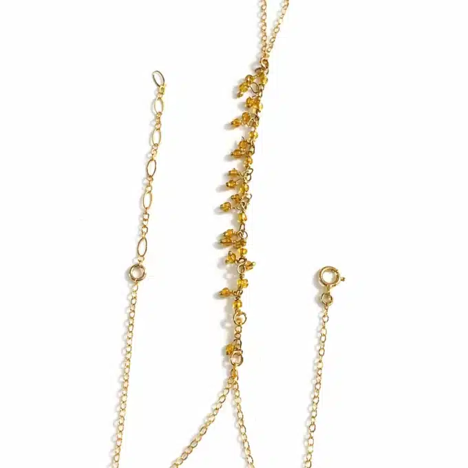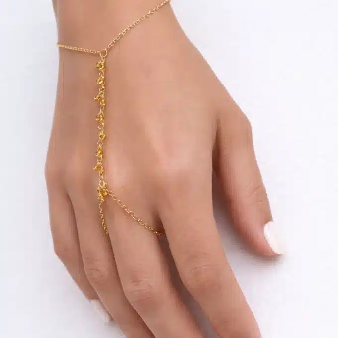 Soyez le premier à laisser votre avis sur “Bracelet bague chaîne main artisanal en citrine jaune et plaqué or”