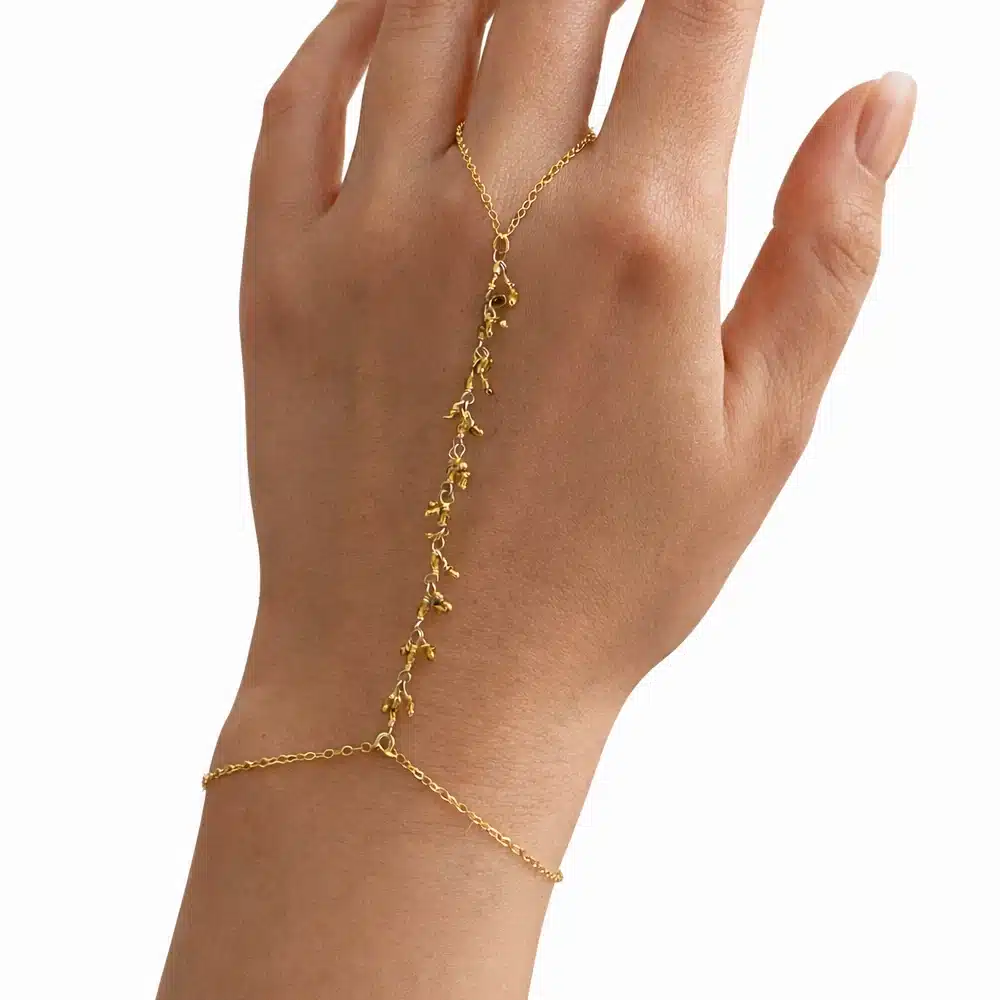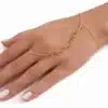 Un bracelet bague chaîne main artisanal au design raffiné