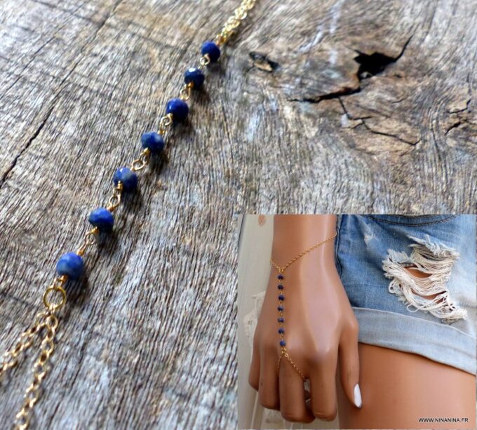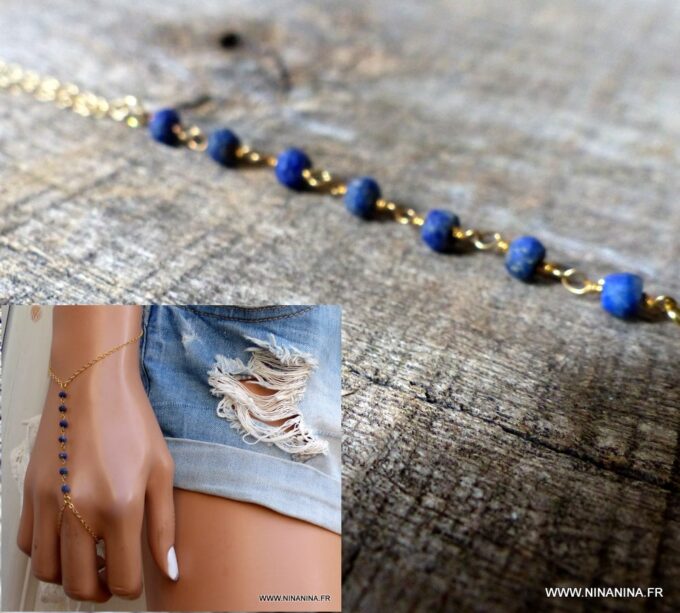 Bracelet bague bohème Lapis Lazuli et plaqué or