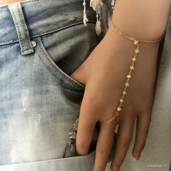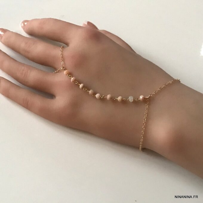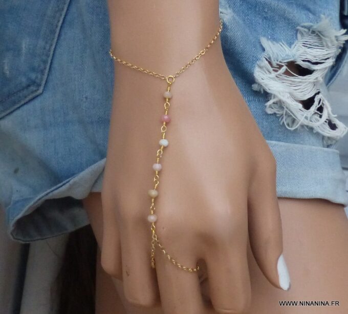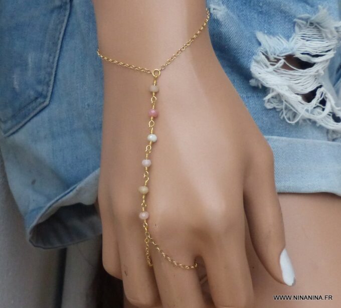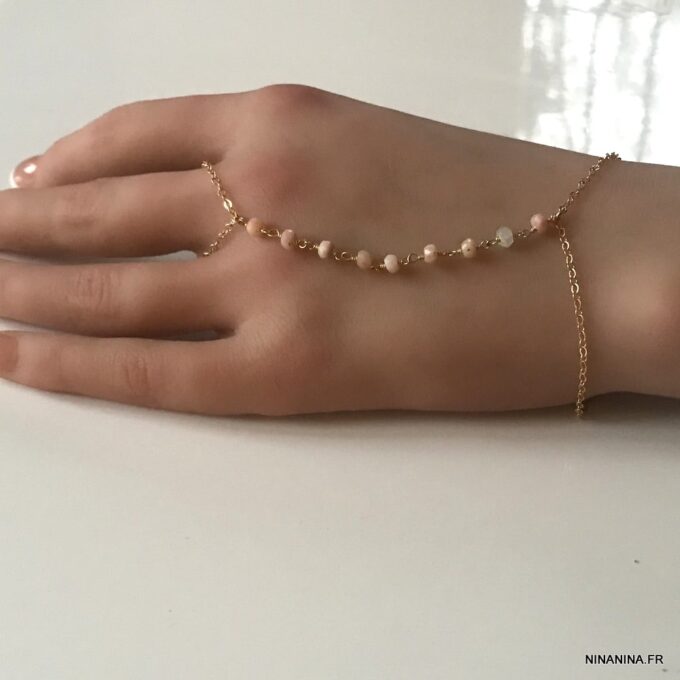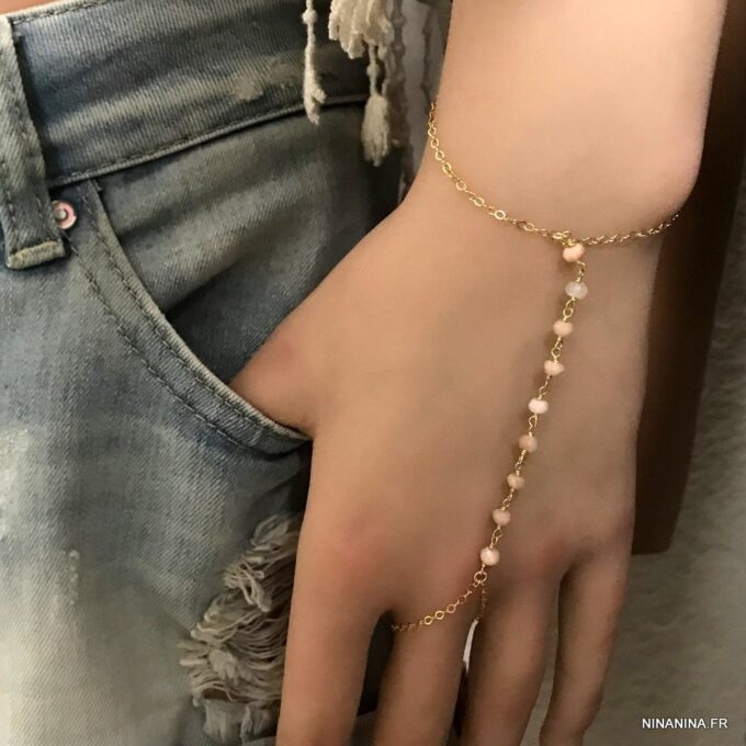 Soyez le premier à laisser votre avis sur “Bracelet bague chaine de main plaqué or opale rose”