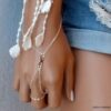 Ce bracelet bague – chaine de main est en argent 925. L’argent est un métal précieux au même titre que l’or et le platine. Par définition, l’argent pur doit contenir 99 à 100% d’argent. Dans le domaine de la bijouterie, on lui ajoute un ou plusieurs métaux pour le rendre plus dur. L’argent a donc une teneur de minimum 92,5% d’argent pur. C’est ce que l’on appelle l’argent 925 ou argent massif.