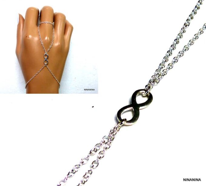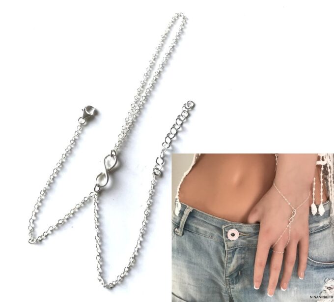 Splendide, délicat et raffiné, ce magnifique Bracelet Bague infini Chaine main Argent massif composé d’un symbole infini en argent 925 monté sur une chaine en en argent 925 maille forçat, à enrouler autour du doigt, délivre toute sa finesse, et vous fera tout simplement craquer! Tout un symbole pour un bijou sobre, raffiné et élégant terminé par un fermoir mousqueton sûr et facile d’utilisation. Offrez ce joli Bracelet ultra tendance à votre amoureuse ou à votre meilleure amie!.