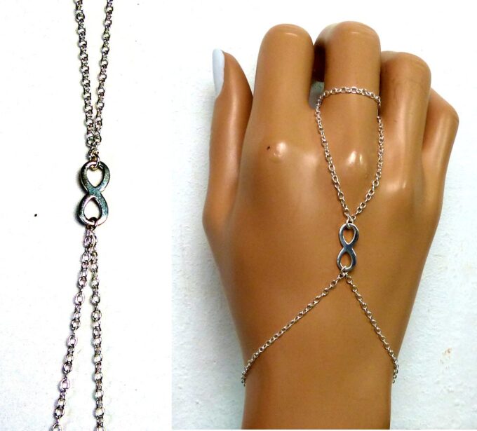 Cette Chaine de main en argent 925 de haute qualité est unique et fabriquée à la main, de façon artisanale dans notre atelier du sud de la France. Elle est terminée par un délicat fermoir mousqueton, sûr et facile d’utilisation. Il s’agit d’une pièce faite sur mesure qui convient pour la majorité des statures, la longueur est de 20 cm. Merci de laisser un commentaire si vous souhaitez une autre longueur. Dim du signe infini : 1,4 X 0,6 cm. Poids : 1,6 g.