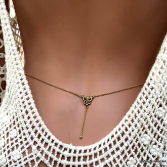 Bracelet bague doré – bijou de main acier or composé d’une estampe en métal doré montée sur une chaînette en acier inoxydable doré à enrouler autour du doigt.
