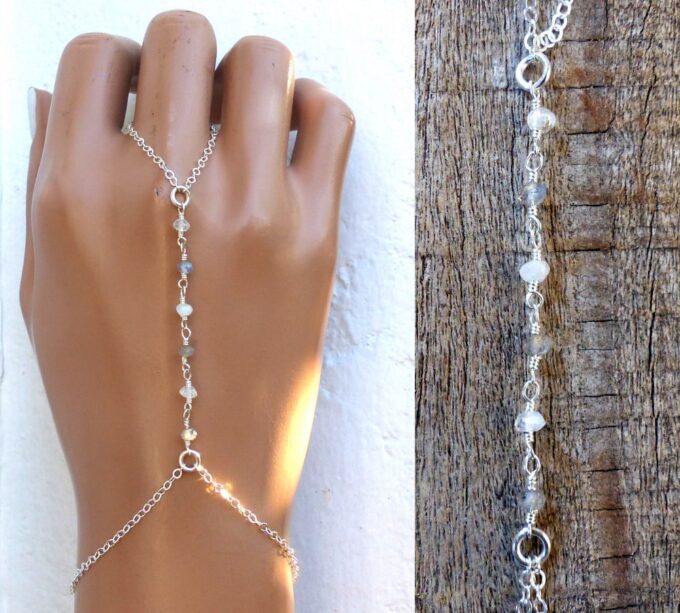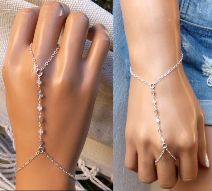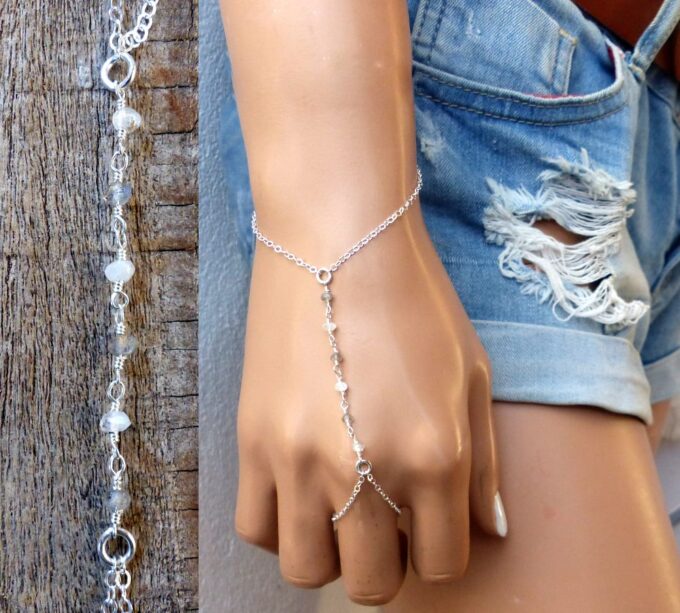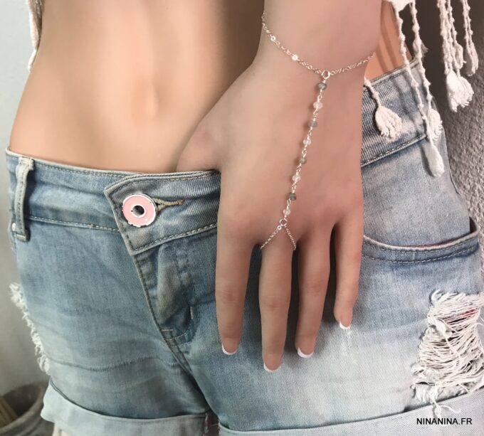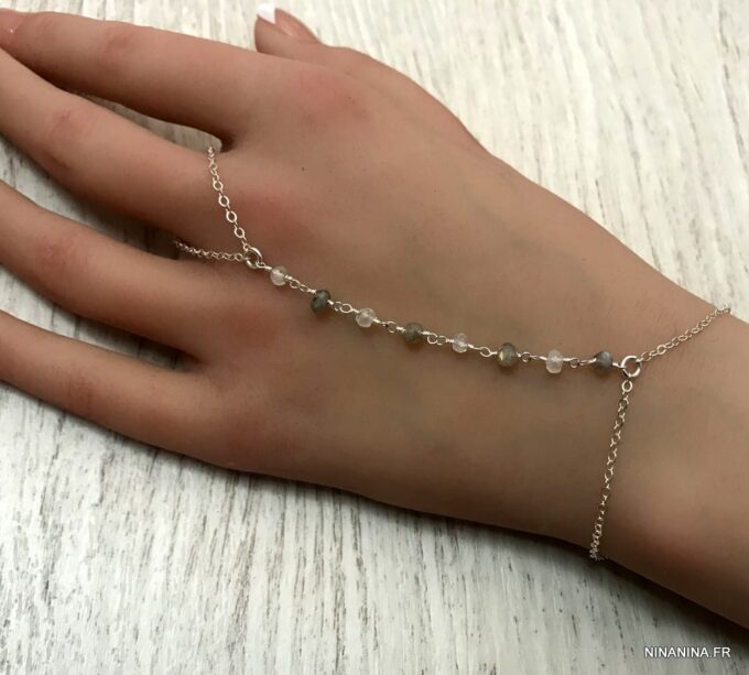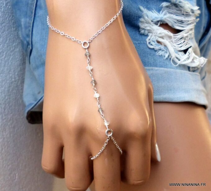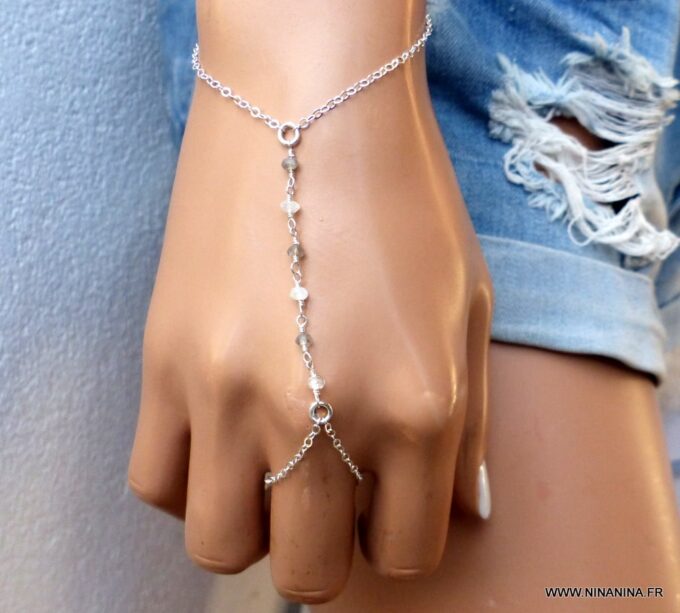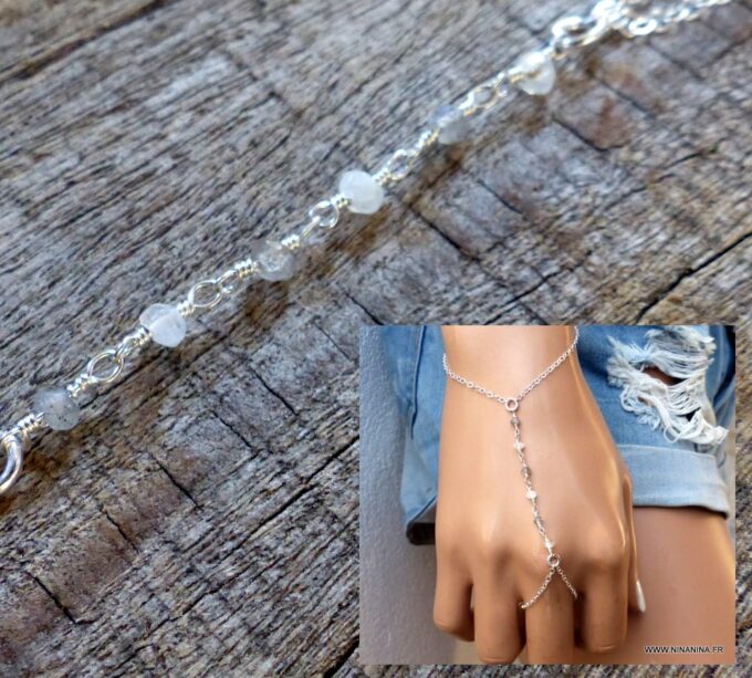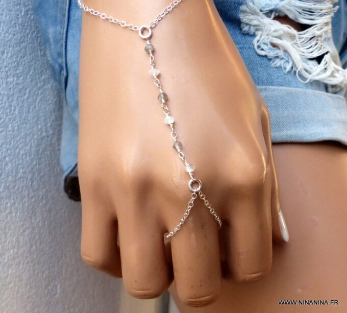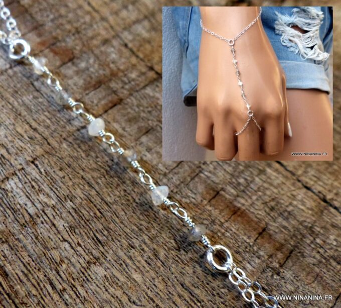 Ce Bracelet Bague mariage tendance et bohème est le cadeau idéal pour les natifs du mois de juin, dont la Pierre de Lune est la Pierre de Naissance. La Pierre de lune est une Pierre très calmante, apaisante, c’est un anti-stress. Elle stimule l’imagination, apporte douceur et sensibilité, développe l’intuition, l’imagination et favorise la fertilité.