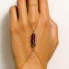 La chaîne dorée délicate relie la bague au bracelet en une harmonie parfaite, créant un effet précieux et sensuel.