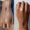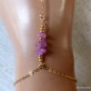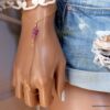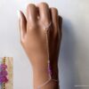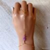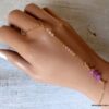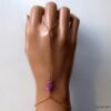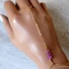 Cette Chaine de main en plaqué or et saphir rose de haute qualité est unique et fabriquée à la main, de façon artisanale dans notre atelier en France. Elle est terminée par un déicat fermoir rond à ressort en plaqué or 14 carats gold filled, sûr et facile d’utilisation.  Il s’agit d’une pièce faite sur mesure qui convient pour la majorité des statures, la longueur est de 18 cm réglable grâce à sa chainette de rallongement.. Merci de laisser un commentaire si vous souhaitez une autre longueur. Poids : 3 g.