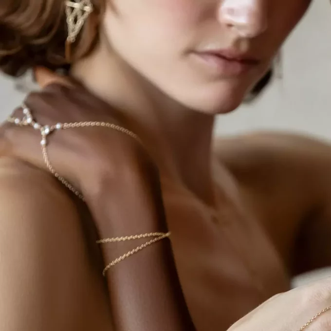 Ce splendide bracelet de doigt, appelé également Bracelet bague ou chaine de main, est un bijou peu commun qui est devenu un incontournable de la mode depuis quelques mois qui peut se révéler d’une délicatesse et d’un raffinement exquis!