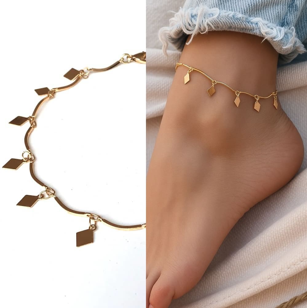 Soyez le premier à laisser votre avis sur “Bracelet de cheville boheme chic losange en laiton doré”