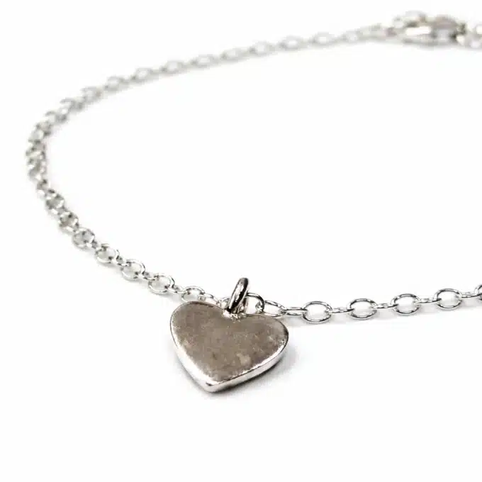Bracelet chaînette femme en argent massif 925 avec pendentif cœur lisse. Bijou artisanal fin, élégant et intemporel, parfait au quotidien ou comme cadeau symbolique.
