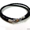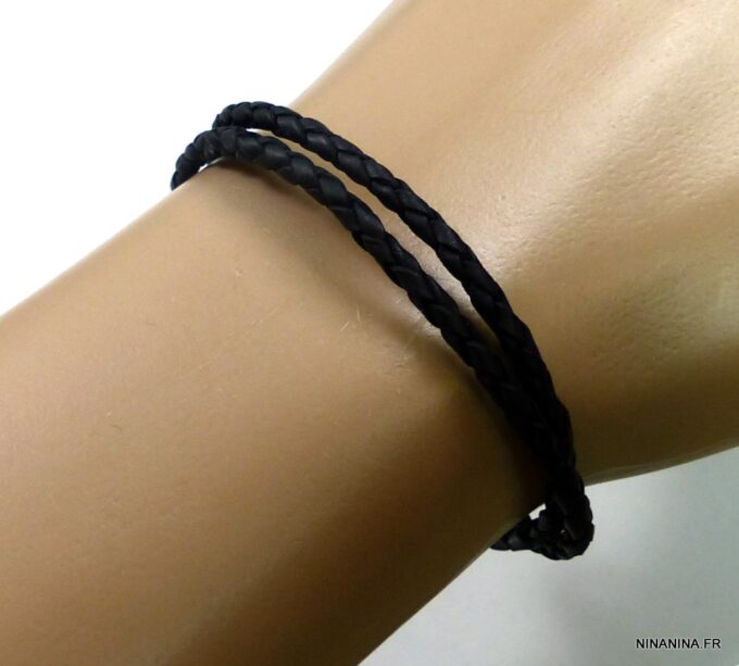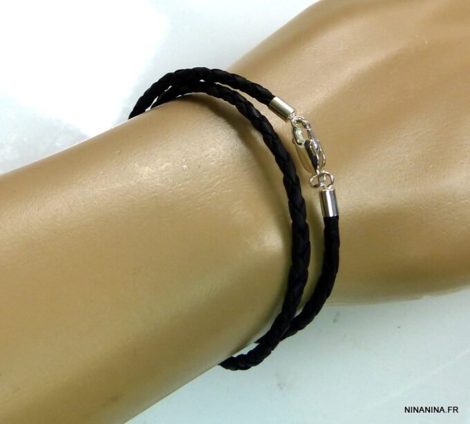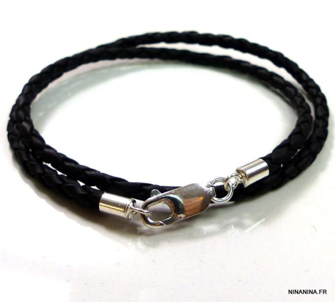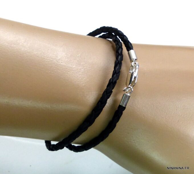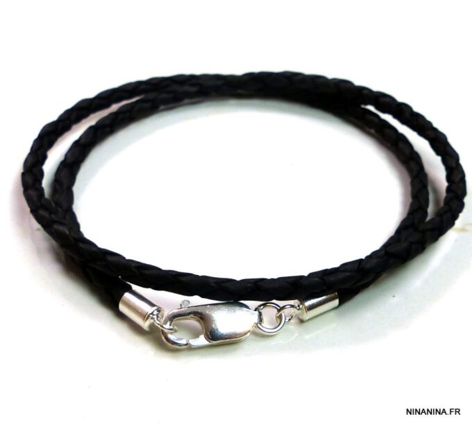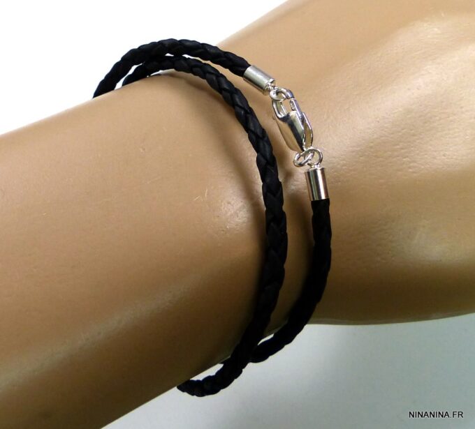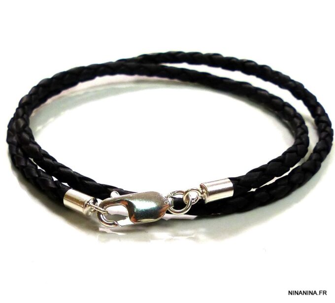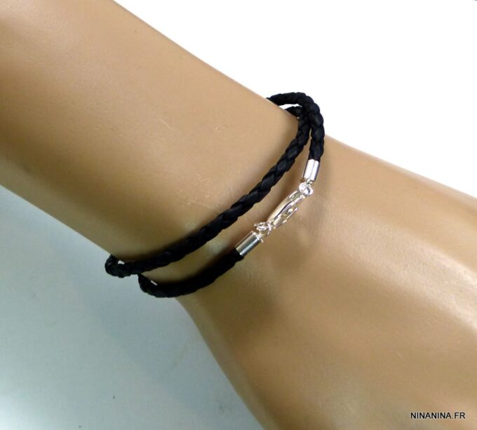 Lanière de cuir tressée qui s’enroule sur deux tours à un poignet masculin ou féminin, un fermoir en argent 925, sûr et facile d’utilisation, ce Bracelet cuir tressé double tour argent 925 massif séduira les amateurs du style urbain contemporain.