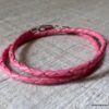 Ce Bracelet cuir double tour est fabriqué à la main, de façon artisanale et en série limitée dans notre atelier du sud de la France. Diamètre du cordon cuir : 3 mm. Longueur : 42 cm. Disponible avec un cordon noir, marron chocolat, rose, naturel et rouge.