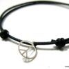 Bracelet reglable peace Argent 925 massif Cordon Cuir