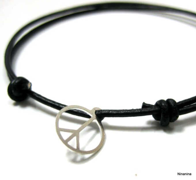 Soyez le premier à laisser votre avis sur “Bracelet reglable peace Argent 925 massif Cordon Cuir”