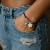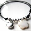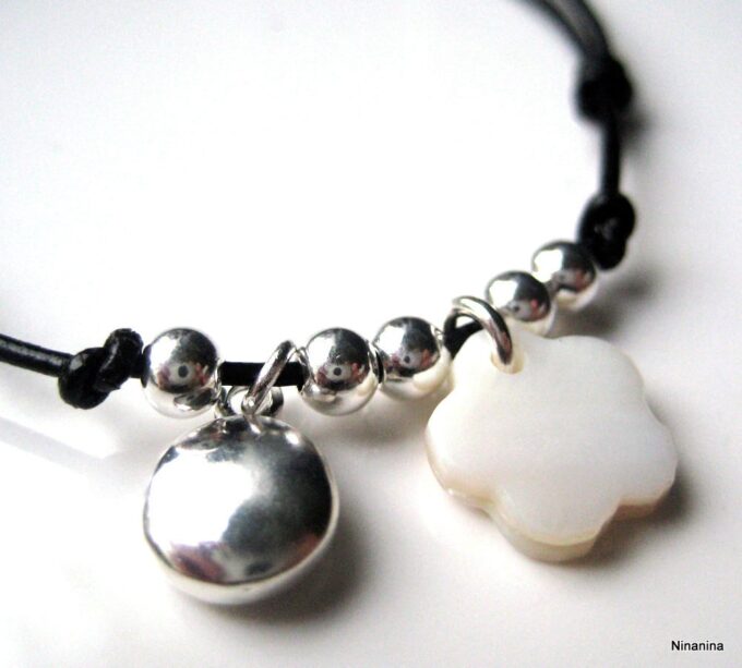 Bracelet Porte-Bonheur Artisanal en Cordon Noir, Nacre et Argent – Élégance Naturelle et Symbolisme Bohème