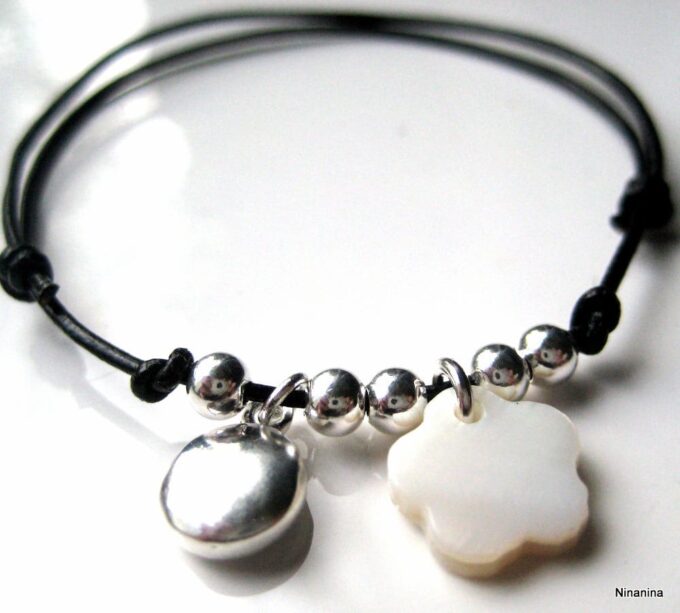 Ce bracelet fantaisie en nacre et argent est une ode à la féminité et à la douceur.