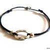 Bracelet femme cordon argent massif martelé composé d’un anneau martelé ovale, d’une breloque et de deux petites perles en argent 925 montés sur un cordon en coton ciré (1mm d’epaisseur).
