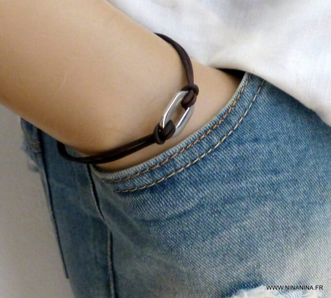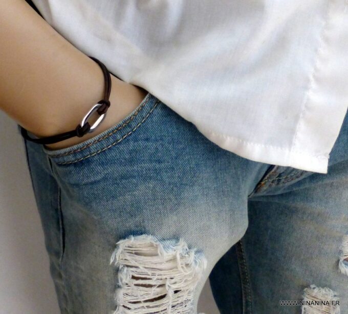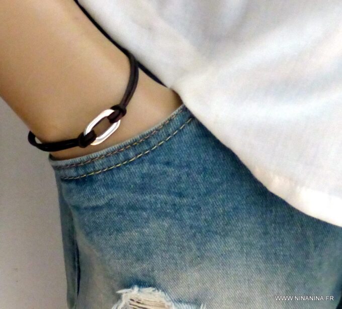 Soyez le premier à laisser votre avis sur “Bracelet cordon cuir Anneau Ovale Acier”