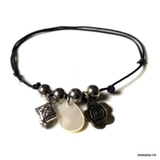 Ce bracelet fantaisie gri-gri femme se porte seul pour une touche raffinée ou en accumulation avec d’autres bracelets bohèmes Ninanina pour un look plus affirmé. Sa chaînette argentée et ses breloques contrastées subliment aussi bien un style urbain chic qu’un look décontracté d’été.