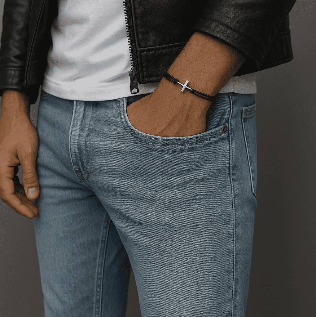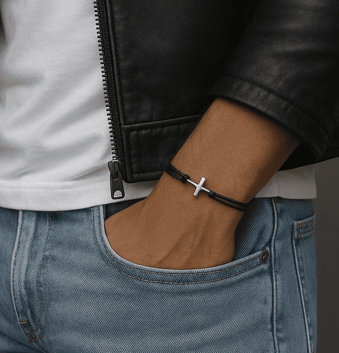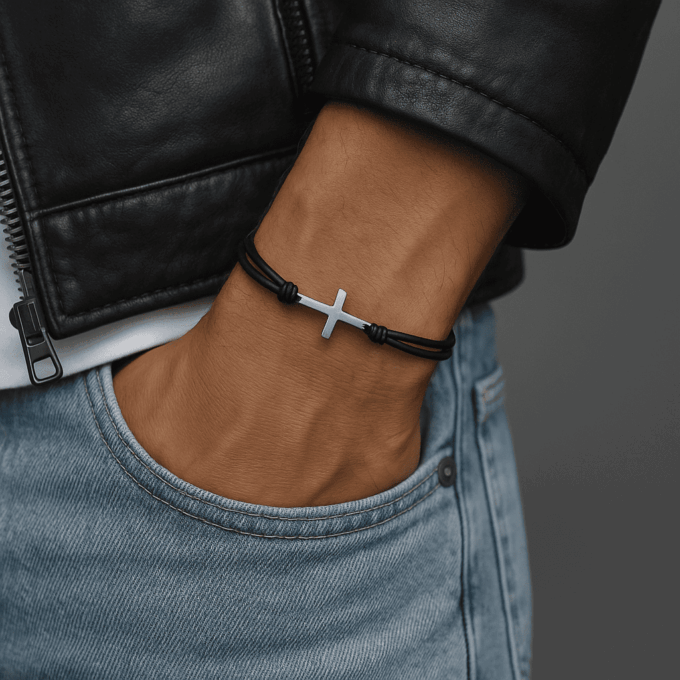 Le Bracelet cordon croix : Un bracelet masculin alliant foi, style et robustesse