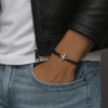 L’association du cuir noir et de l’acier inoxydable argenté offre un contraste élégant et masculin. Résistant et durable, ce bracelet est conçu pour un usage quotidien, que ce soit pour un look décontracté ou plus habillé.