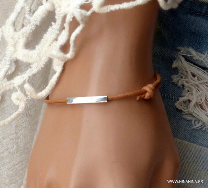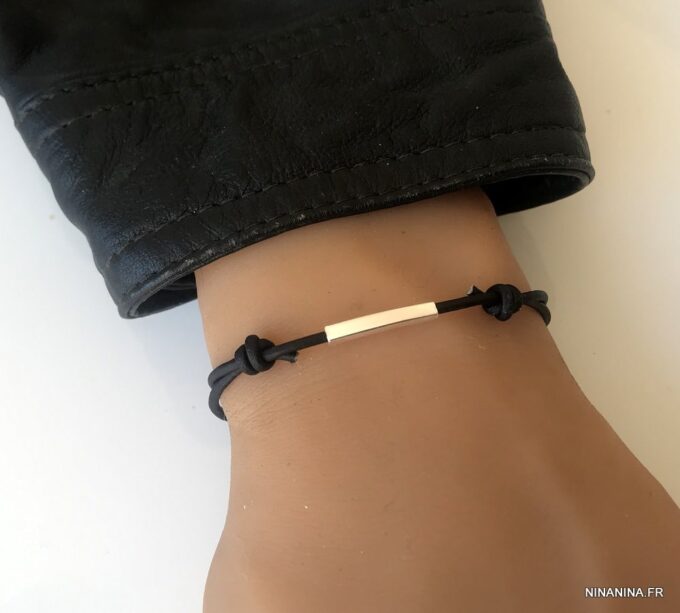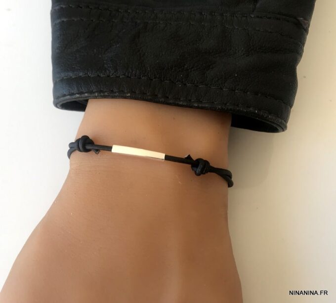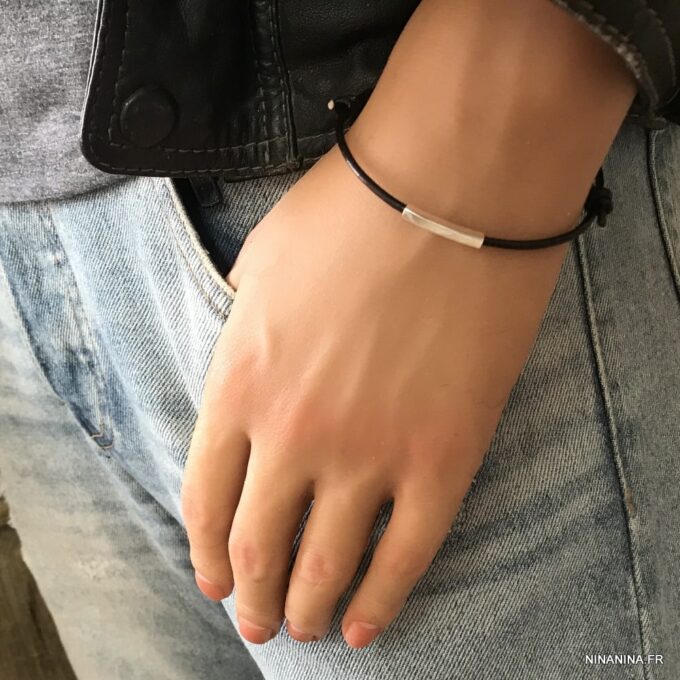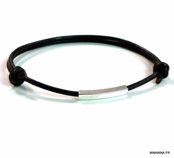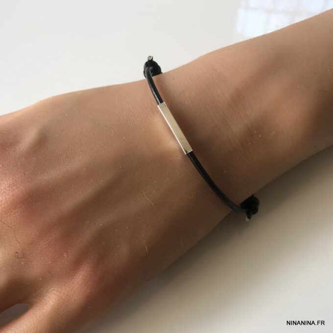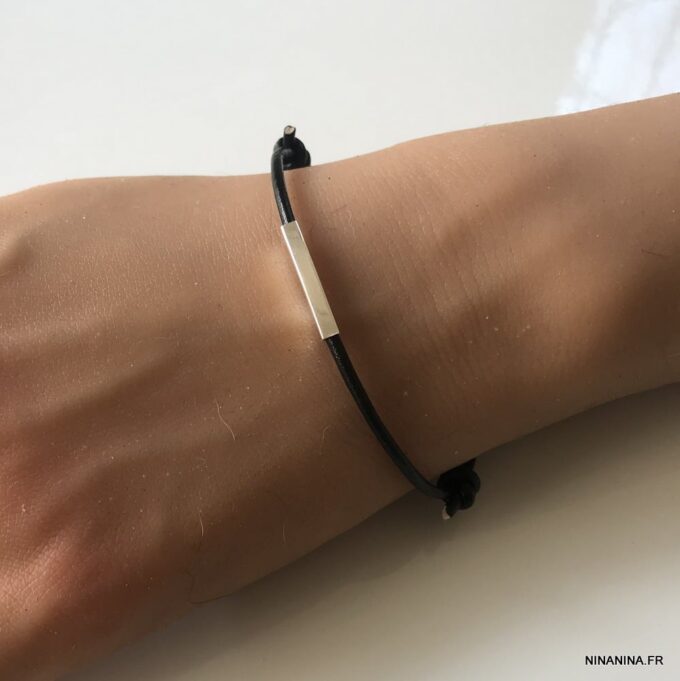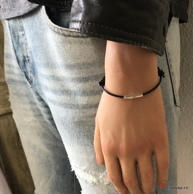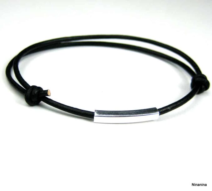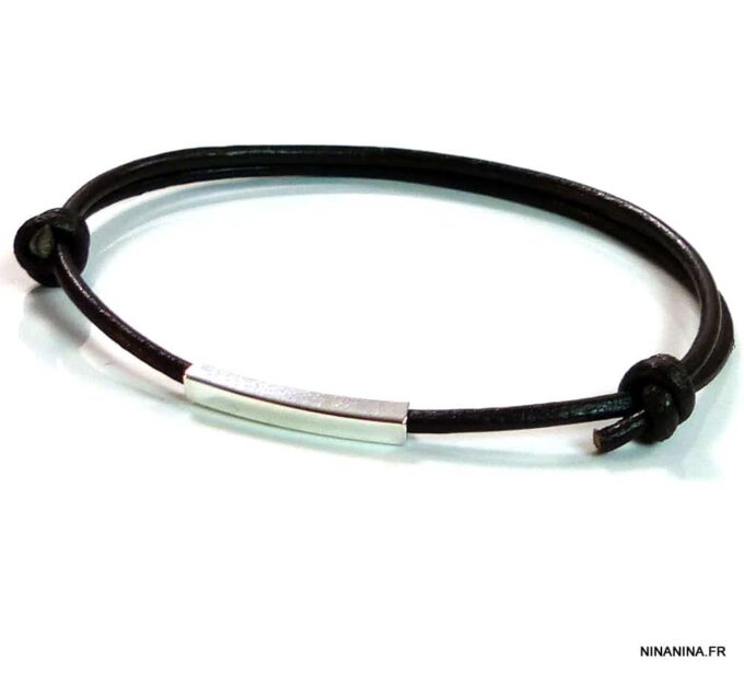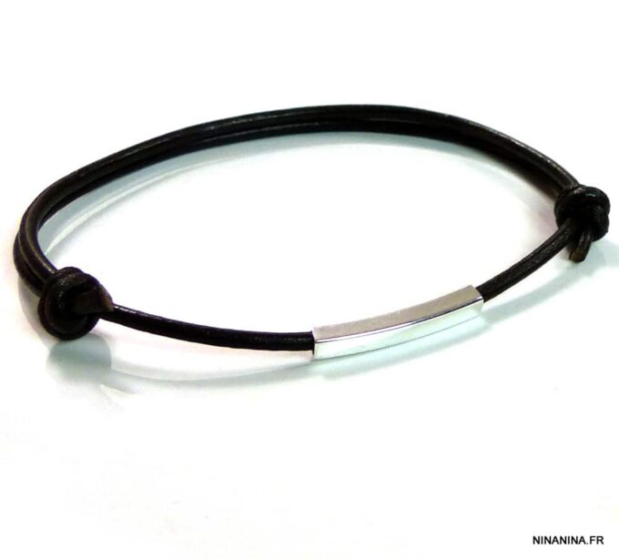 Envie d’offrir un bijou à un homme discret et élégant? Ce Bracelet tube Argent 925 sur cordon cuir coulissant composé d’une perle tube rectangulaire en argent 925 montée sur un cordon cuir de 2 mm de diamètre, saura trouver sa place à son poignet! un beau cadeau masculin pour la fête des pères ou la Saint-Valentin…