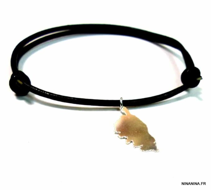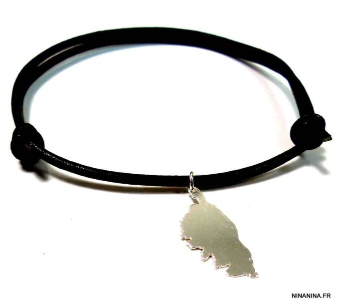 Bracelet homme cordon cuir CORSE argent massif composé d’un pendentif CORSE en argent 925 monté sur un cordon de cuir noir (2 mm de diamètre).