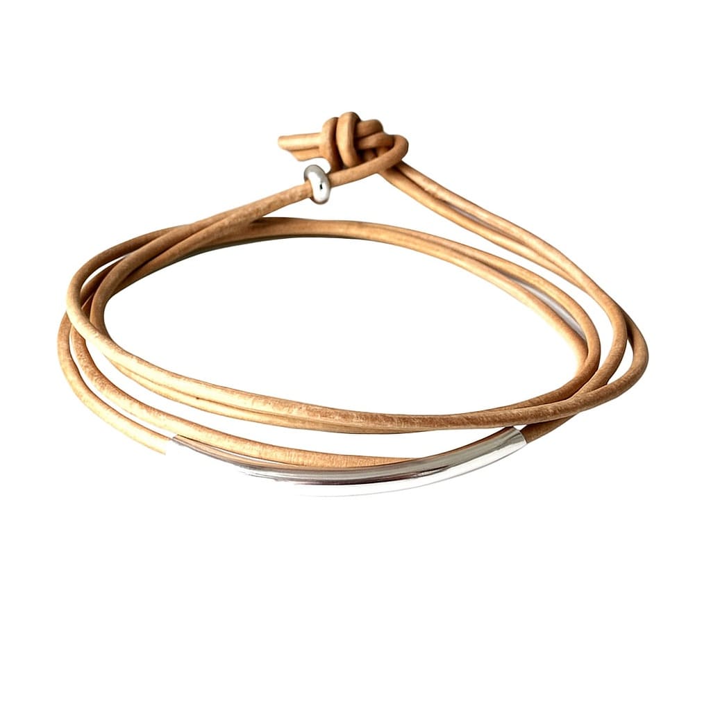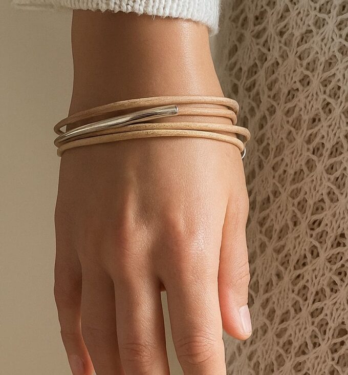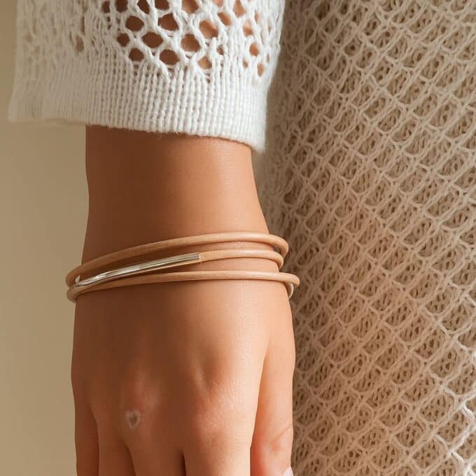 Sublimez votre poignet avec notre bracelet cordon femme en cuir tendance, conçu à la main en France. Son lien en cuir véritable enroulé autour du poignet  et son tube en argent 925 apportent une touche d’élégance discrète et sophistiquée. Idéal pour un cadeau ou pour parfaire votre style au quotidien.
