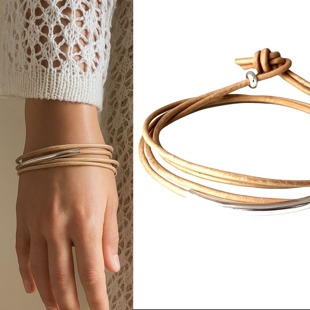 Il associe le charme authentique du cuir véritable à la brillance délicate de l’argent 925, pour un bijou à la fois sobre et chic. Son design enroulé épouse parfaitement le poignet, offrant un confort optimal et un style moderne.