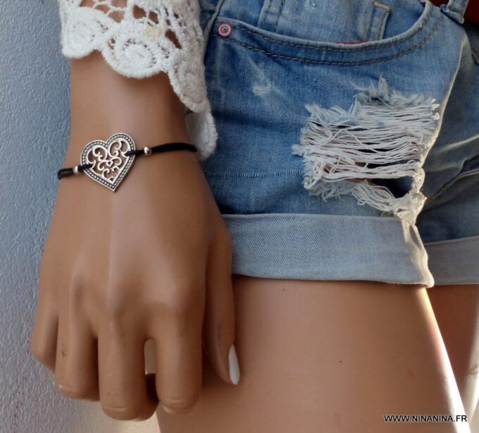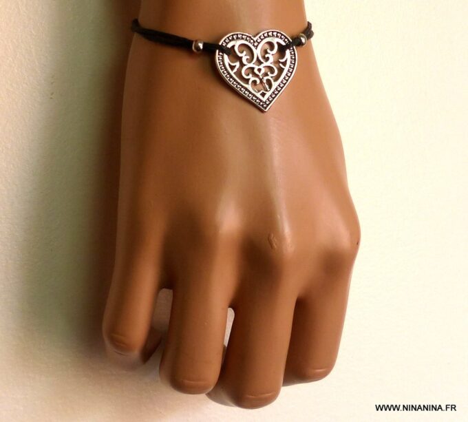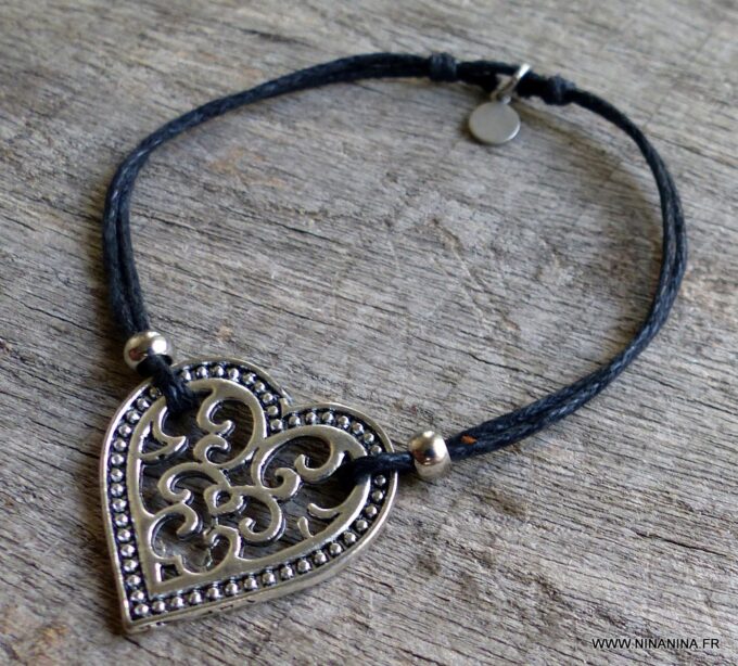 Soyez le premier à laisser votre avis sur “Bracelet cordon coeur métal argenté”