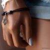 La longueur minimale proposée est de 17 cm et la longueur maximale de 29 cm mais il est possible d’opter pour une toute autre longueur si vous avez des poignets plus fins ou plus forts que la moyenne. De la même façon, vous pouvez choisir un autre système de fermeture que celui par liens coulissants proposé ou demander à remplacer le cuir par du coton, plus adapté à la baignade, par exemple. Il vous suffit de laisser un commentaire et nous élaborerons ensemble votre nouveau bijou personnalisé.