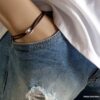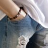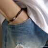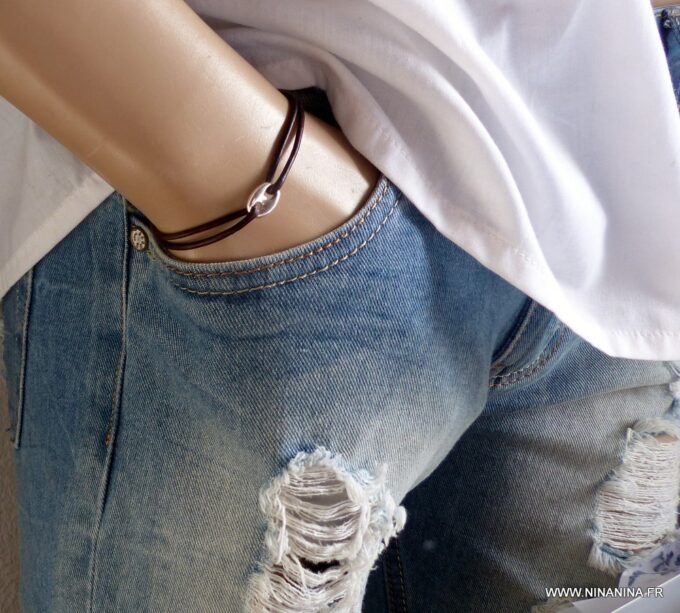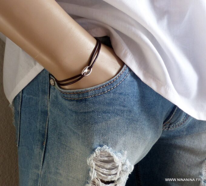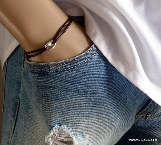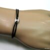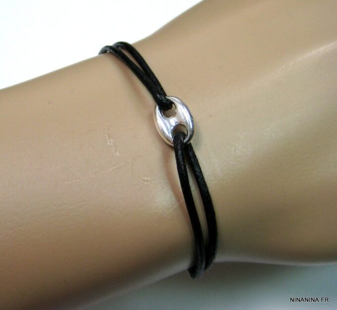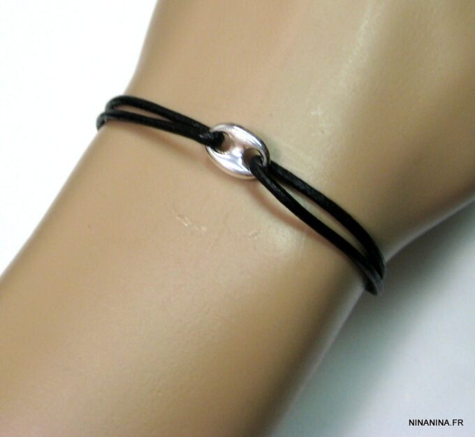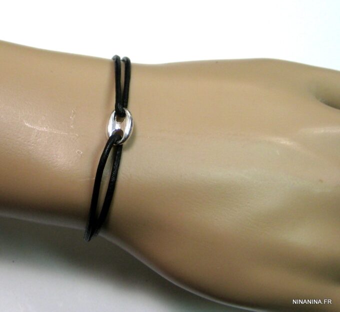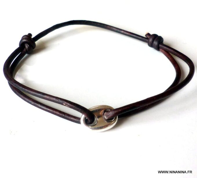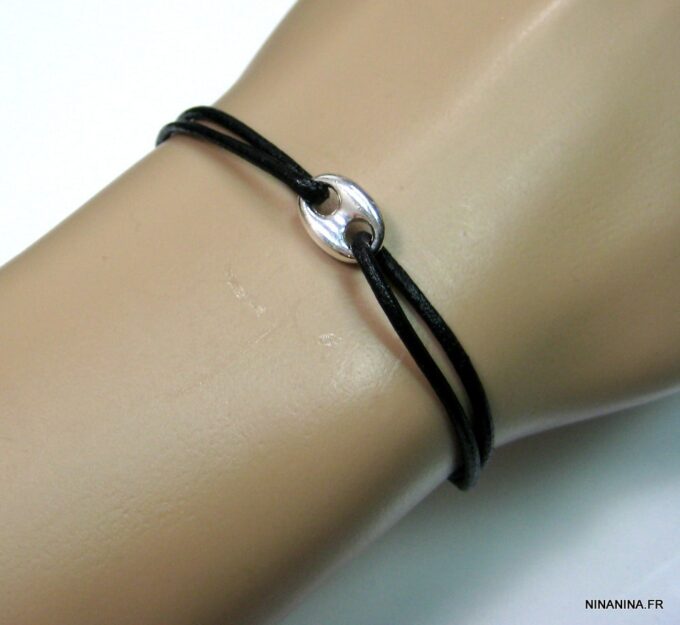 Bracelet grain de café Argent plaqué cordon cuir réglable composé d’un grain de café en plaqué argent monté sur un cordon de cuir noir.