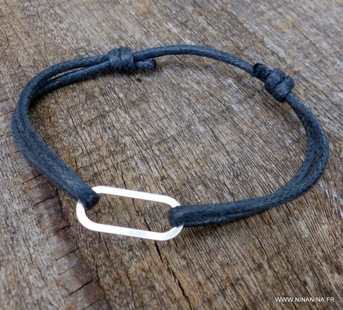 Bracelet homme cordon coton argent 925 massif