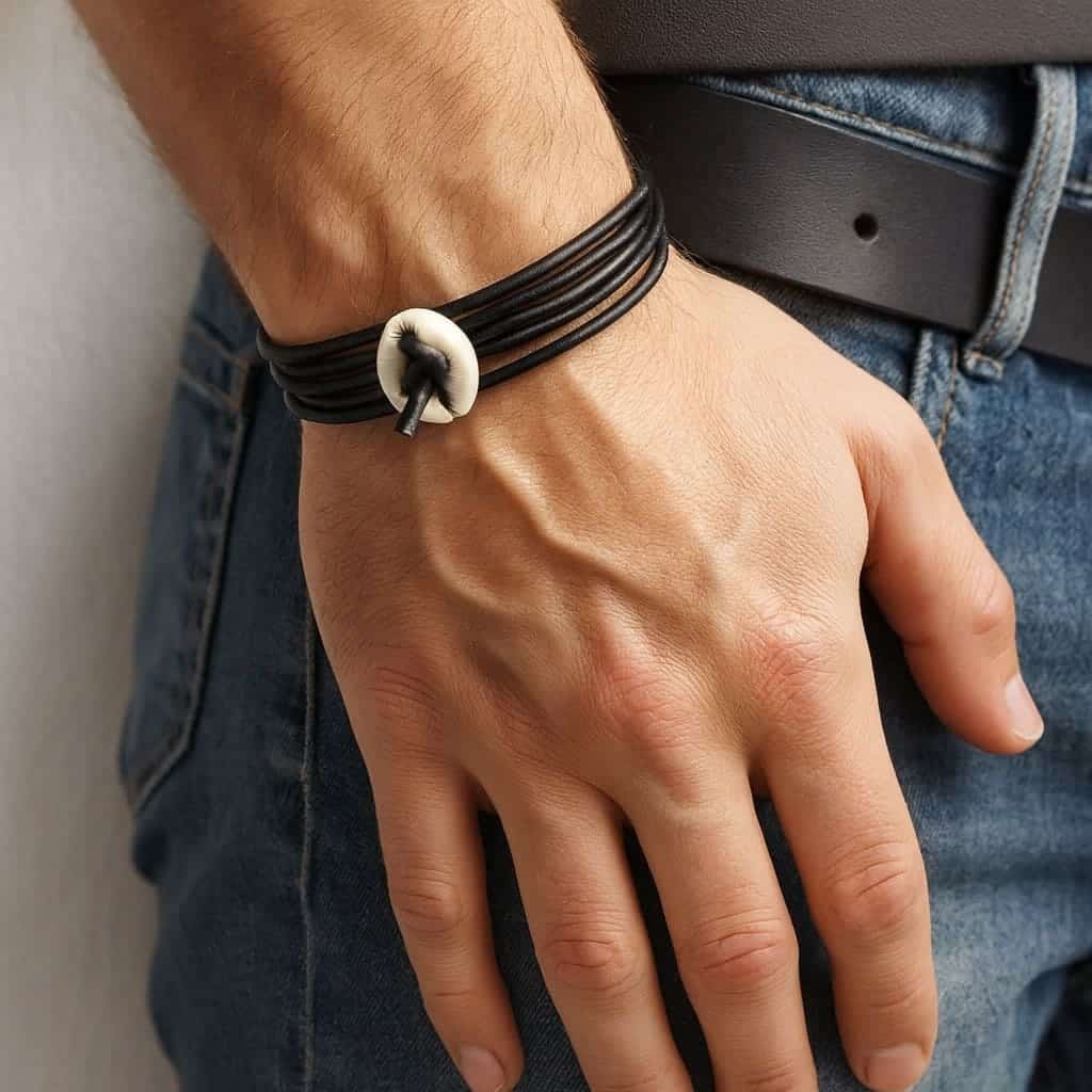 Soyez le premier à laisser votre avis sur “Bracelet cordon coquillage cauri blanc et cuir homme ou femme”