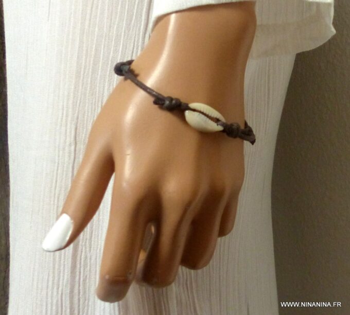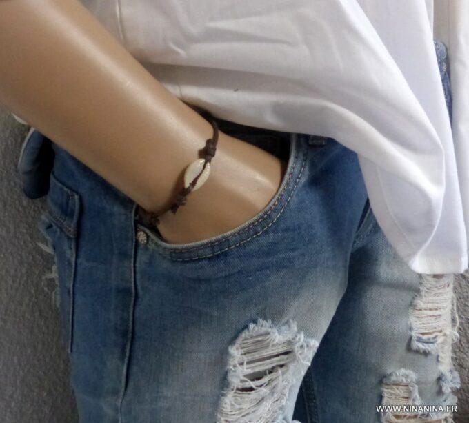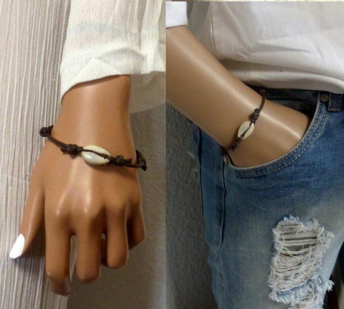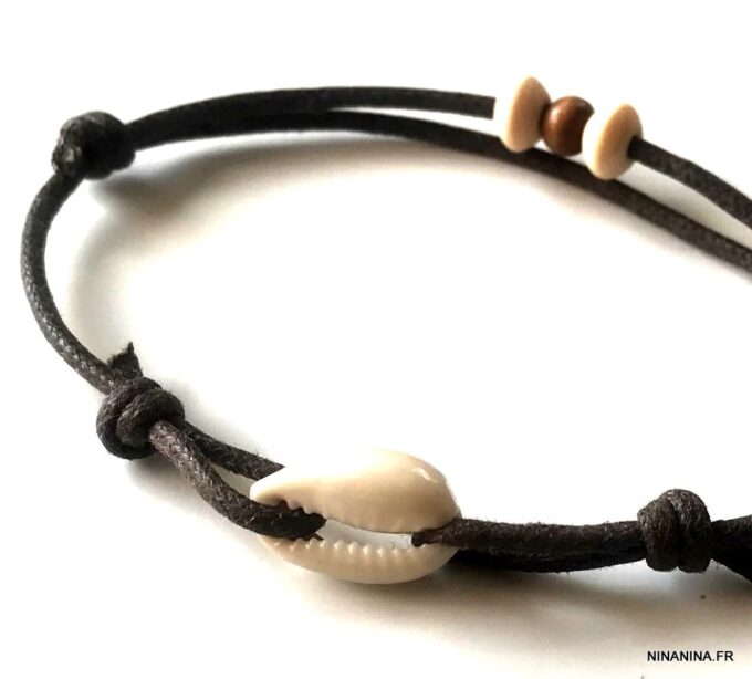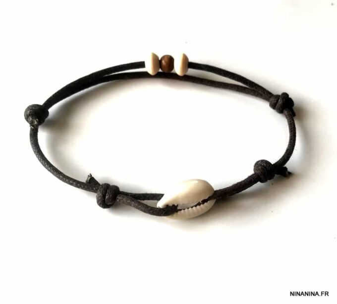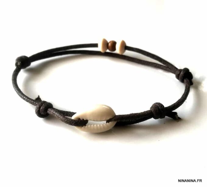 Offrez un look boho chic à votre poignet avec ce Bracelet coquillage homme et femme cauri perles bois composé d’un coquillage grain de café et de petites perles en bois montés sur un cordon de coton ciré marron chocolat (2mm de diamètre) qui vous accompagnera tout au long de l’été. Un bracelet que vous adorerez porter à la plage aussi bien qu’au bureau sur votre peau bronzée.